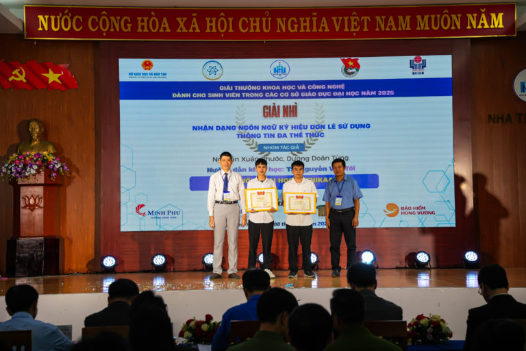 Nhóm nghiên cứu đã ứng dụng công nghệ trí tuệ nhân tạo (AI) vào việc nhận dạng ngôn ngữ ký hiệu, giúp hỗ trợ người khiếm thính trong giao tiếp và hòa nhập cộng đồng. Đề tài này không chỉ mang tính ứng dụng cao, mà còn thể hiện giá trị nhân văn sâu sắc. Nhóm đã xây dựng một bộ dữ liệu ngôn ngữ ký hiệu tiếng Việt với hơn 18.000 video ký hiệu, kết hợp giữa hình ảnh màu (RGB) và dữ liệu độ sâu (Depth). Mô hình học sâu đề xuất đã đạt được độ chính xác trên 80% trong môi trường thí nghiệm, vượt trội so với các mô hình trước đó trên bộ dữ liệu của nhóm và hứa hẹn ứng dụng rộng rãi trong thực tiễn.