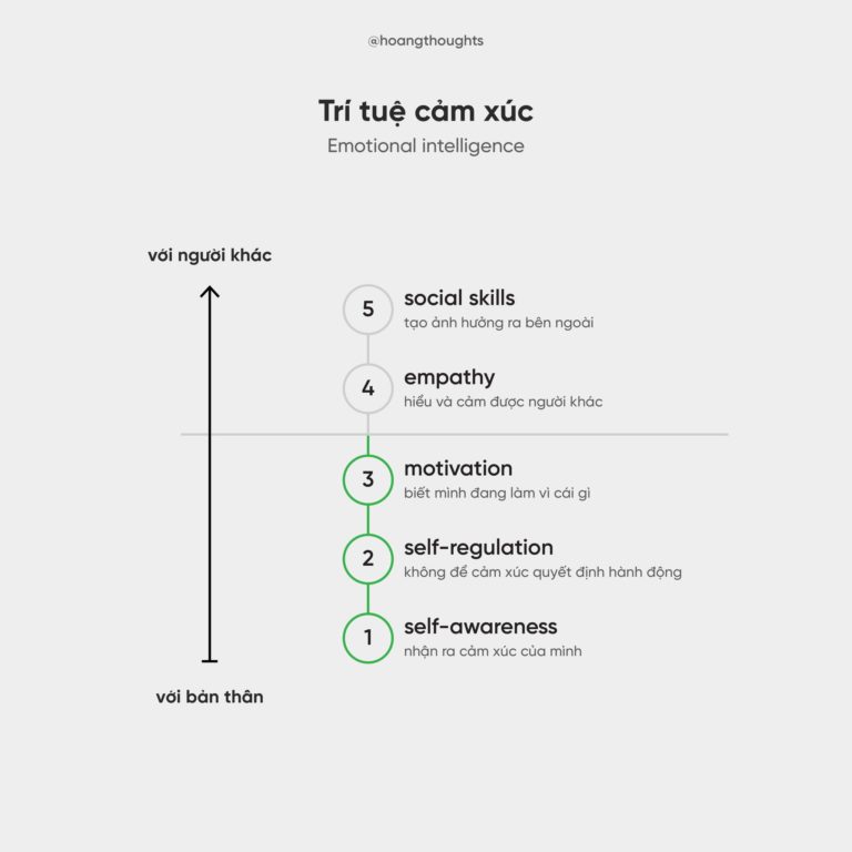 Nhưng vấn đề là, nhiều người nói về EQ như thể đó là bẩm sinh bạn có hoặc không có, như màu mắt hay chiều cao. Theo mình thì không hẳn là như vậy, EQ như là một loại kỹ năng có nền tảng theo từng tầng bậc, mỗi tầng được xây dựa trên tầng trước đó.
