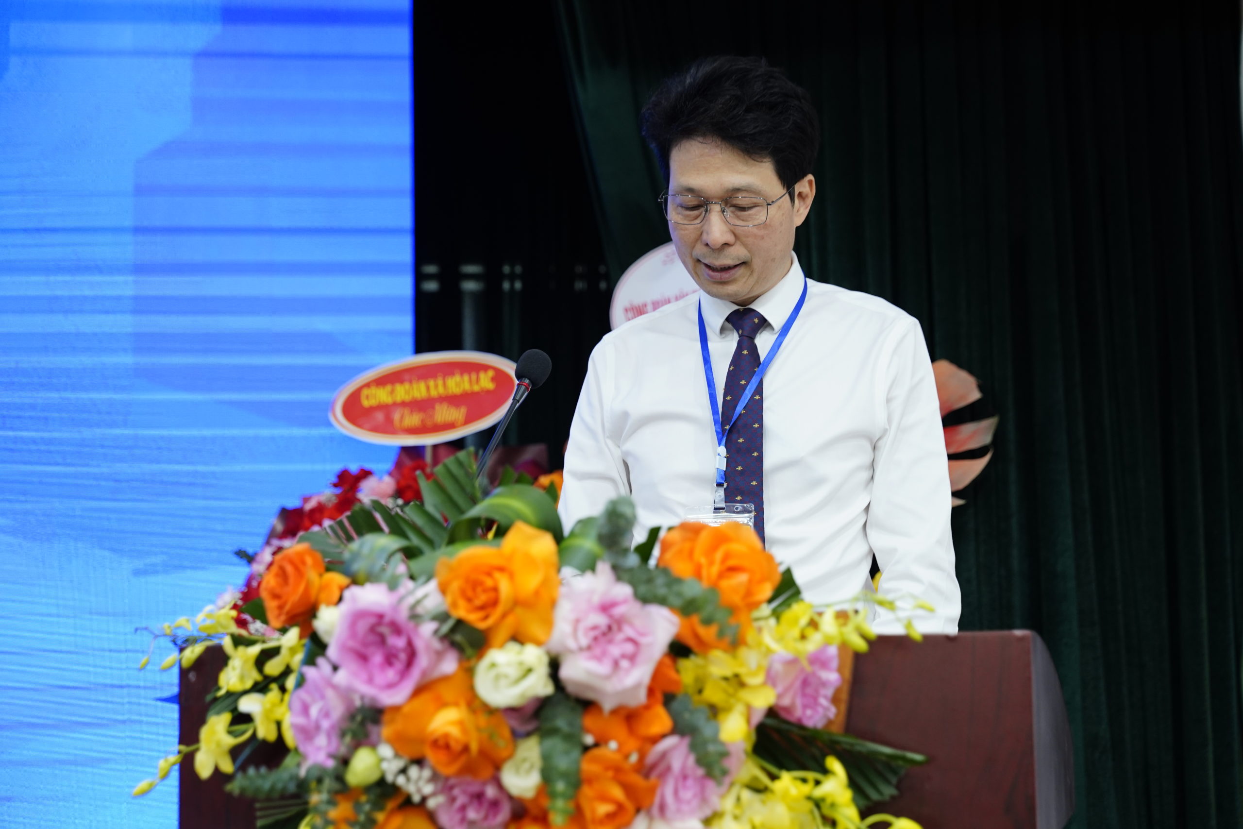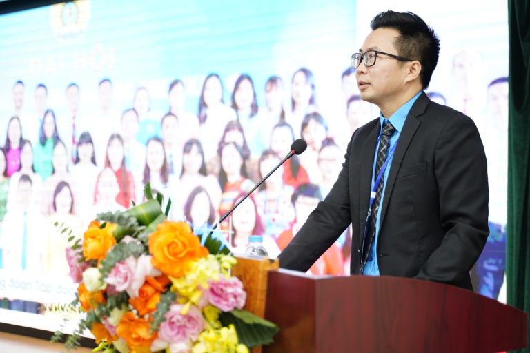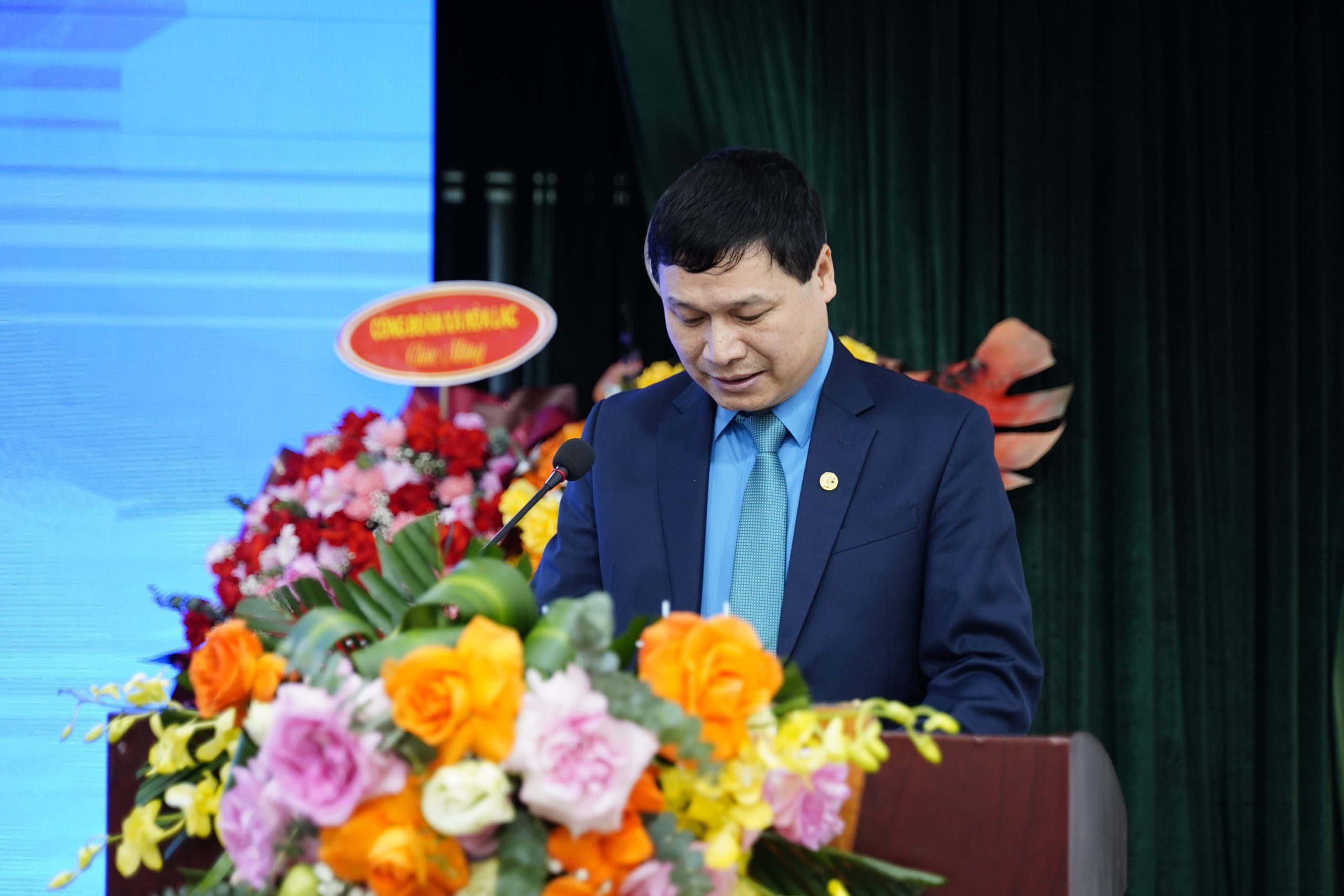 Đồng chí Trần Mạnh Cường – thay mặt đoàn Chủ tịch Báo cáo Phương hướng nhiệm vụ của Công đoàn Phenikaa, nhiệm kỳ 2025-2030