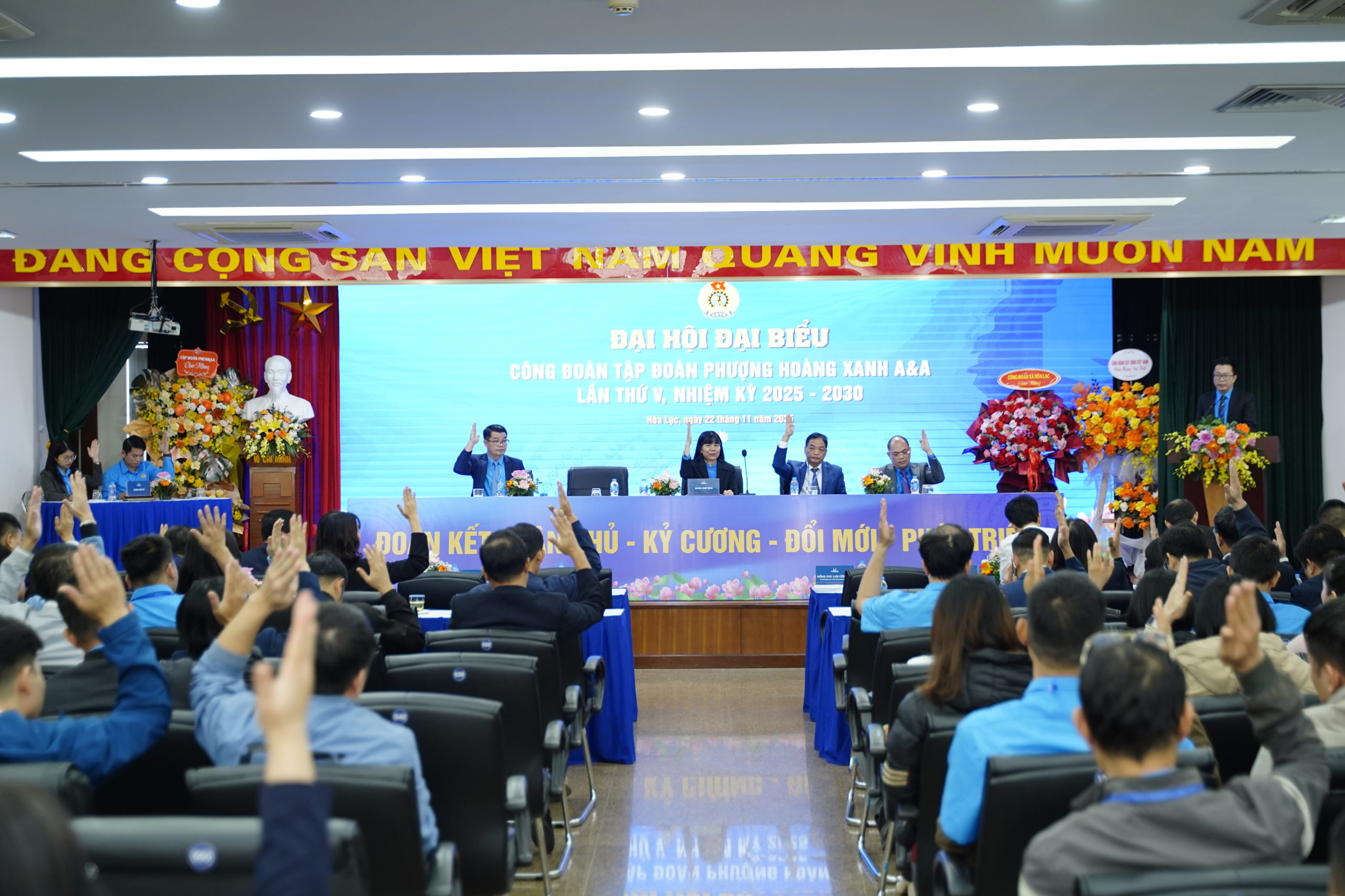 Đại hội đã thông qua Báo cáo tổng kết công tác Công đoàn nhiệm kì 2023-2025 và phương hướng nhiệm vụ nhiệm kì 2025-2030; Báo cáo kiểm điểm Ban chấp hành Công đoàn Phượng Hoàng Xanh A&A, khóa IV, nhiệm kỳ 2023 -2025 cùng các tham luận của các Công đoàn cơ sở thành viên.