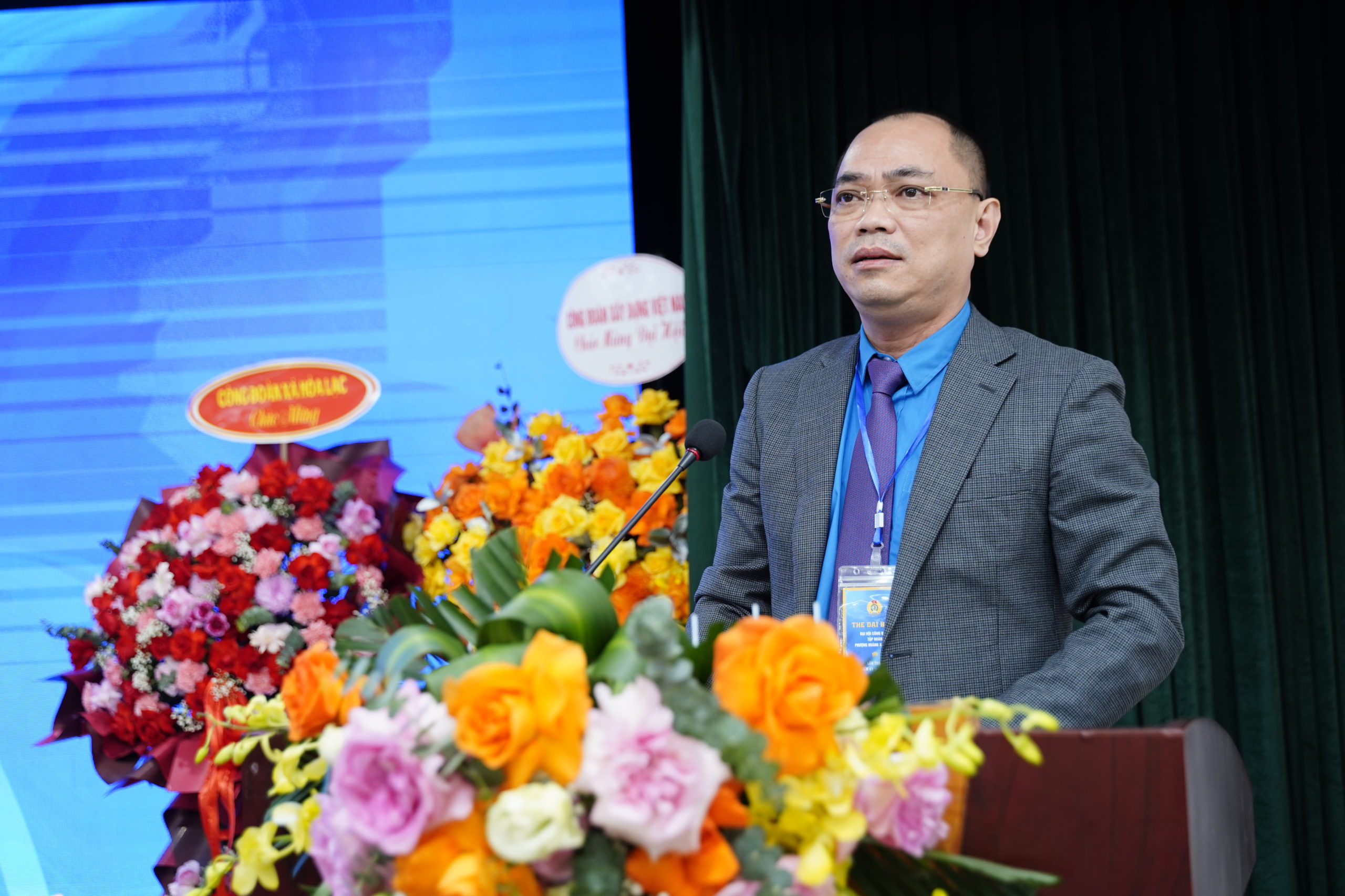 Đồng chí Nguyễn Thanh Tùng Ủy viên BCH Tổng Liên đoàn, Phó Chủ tịch Thường trực CĐXD Việt Nam phát biểu chỉ đạo tại Đại hội