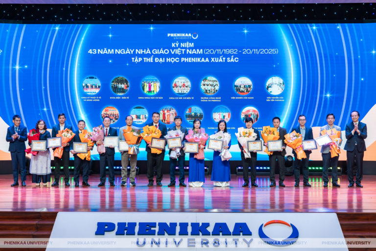 Năm nay, Đại học Phenikaa khen thưởng 13 đơn vị gồm các phòng, ban, khoa, viện có thành tích xuất sắc trong công tác đào tạo, nghiên cứu, phục vụ người học và triển khai hiệu quả các nhiệm vụ được giao. Bên cạnh đó, nhà trường cũng khen thưởng 12 cá nhân có thành tích tiêu biểu, là những thầy cô và cán bộ đã thể hiện tinh thần trách nhiệm, sự tận tụy và đóng góp quan trọng cho sự phát triển chung của Đại học Phenikaa.