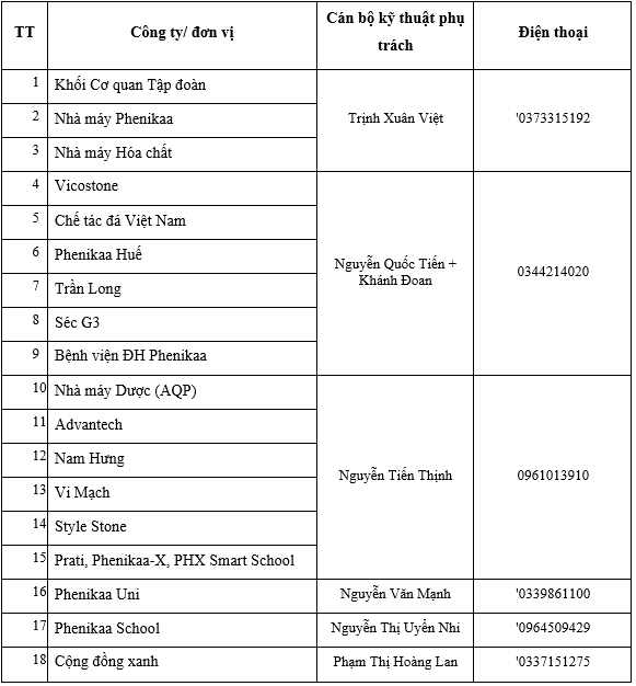 - Đối với các đơn vị thành viên ngoài khối sản xuất được phép chạy và tính kết quả ngoài giờ làm việc (Trước 8h sáng và sau 17h00 hàng ngày) tại khuôn viên của đơn vị: Trường Đại học, Trường liên cấp, bệnh viện Đại học Phenikaa.