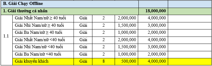 👉 Hệ thống giải thưởng: Có 02 hệ thống giải thưởng riêng biệt dành cho hoạt động chạy Online và chạy Offline