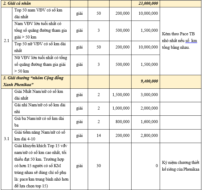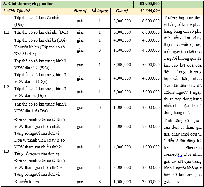 - Nếu một đội chạy đạt được nhiều giải tập thể, đội đó chỉ được nhận 01 giải có trị giá cao nhất.