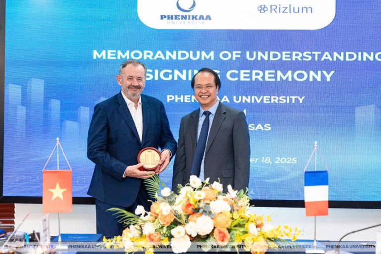 Ngày 18/11/2025, tại phòng 02, tầng 28, tòa nhà A9, Đại học Phenikaa đã long trọng tổ chức Lễ ký kết Biên bản ghi nhớ hợp tác (MoU) với Công ty Rizlum (Pháp), một startup về Trí tuệ nhân tạo (AI) đang phát triển mạnh trong hệ sinh thái công nghệ châu Âu. Sự kiện đánh dấu bước tiến quan trọng trong chiến lược phát triển AI và quốc tế hóa của nhà trường, đồng thời mở ra nhiều cơ hội học tập, nghiên cứu và học bổng cho sinh viên Phenikaa.