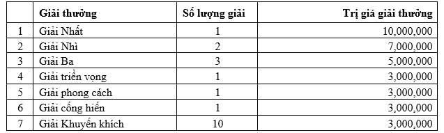 Tổng giá trị giải thưởng: 78.000.000 đồng